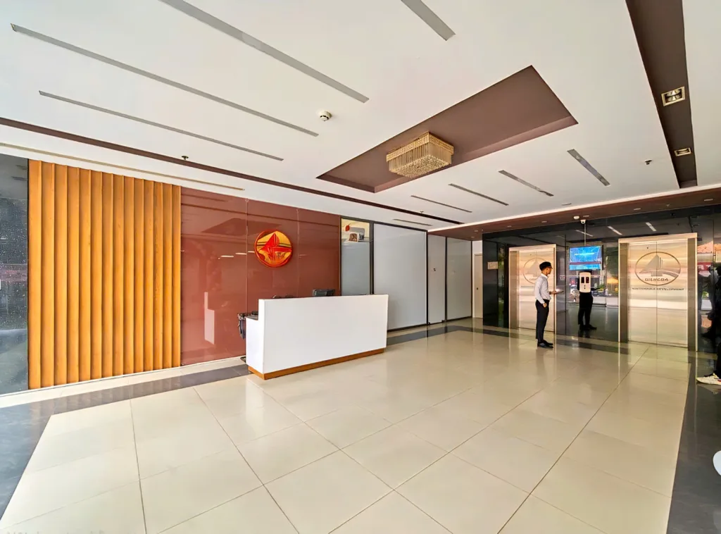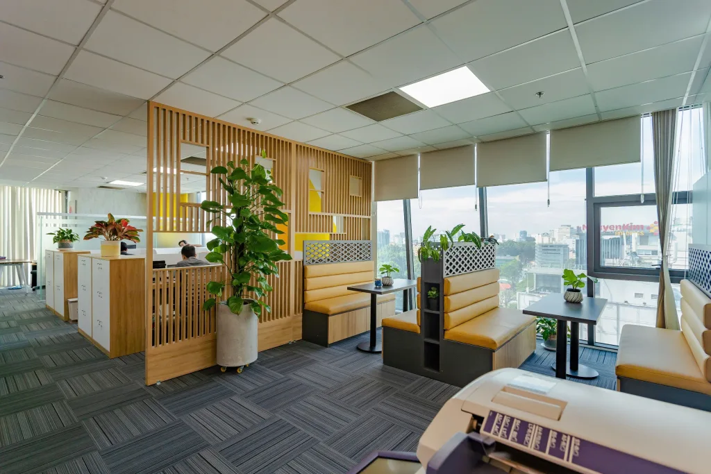 Hệ thống đèn chiếu sáng luôn là ưu tiên hàng đầu với các bóng đôi mang đến nguồn ánh sáng đầy đủ cho toàn bộ văn phòng. Tường được xây dựng từ vật liệu cách âm tốt giúp không gian làm việc thêm yên tĩnh và tách biệt hơn.