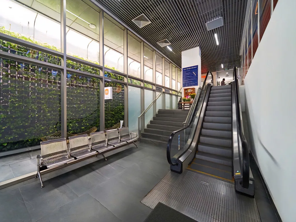 2 thang khách hiệu Mitsubishi và 1 thang cuốn